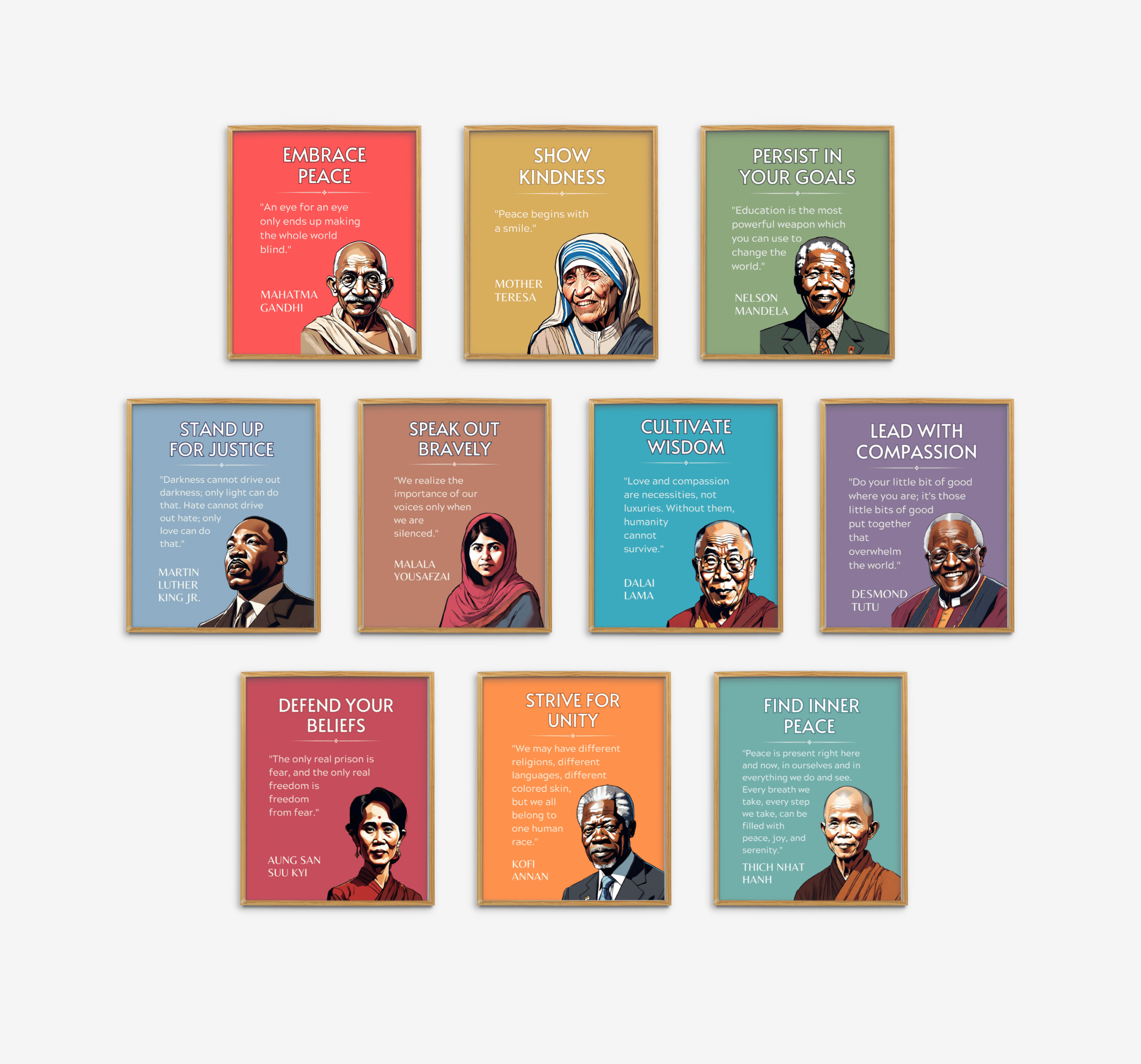 This downloadable Peace Leaders Poster Set features inspiring figures who shaped history through diplomacy, justice, and nonviolent change. Clean, informative designs make complex ideas accessible, helping students understand leadership, global responsibility, and the power of peaceful action. Perfect for classrooms, libraries, and learning spaces that need strong minds on the walls.